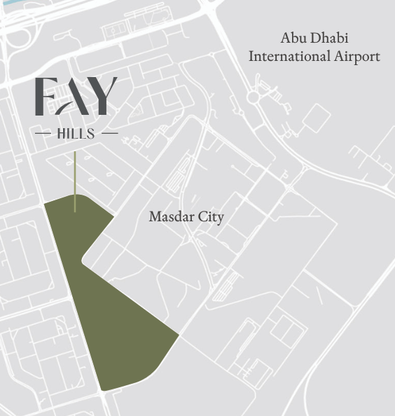 Fay Gardens is located within Fay Hills in Masdar City, close to Abu Dhabi International Airport and major highways.