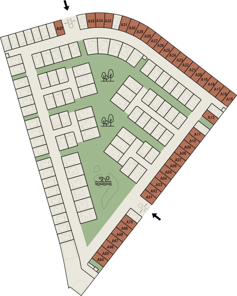 Fay Gardens villa floor plans include multiple configurations of 3, 4 and 5-bedroom layouts. All homes feature open-plan living and dining areas, modern kitchens, staff rooms, storage spaces, outdoor terraces and private gardens.